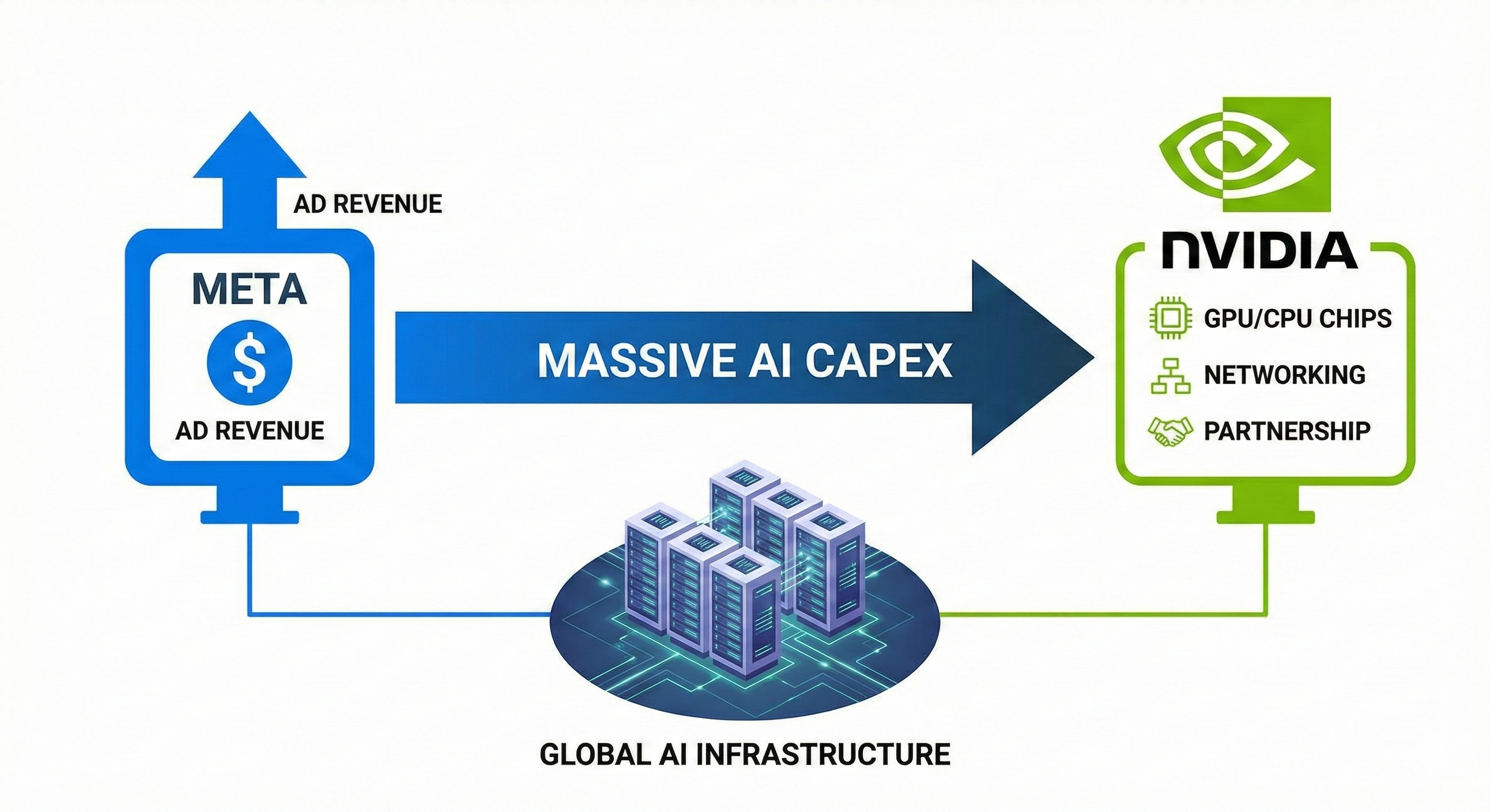 최근 메타의 놀라운 자본 지출 계획과 엔비디아와의 대규모 파트너십 소식이 시장을 뜨겁게 달구고 있습니다.​단순하게 얼마다 이것보다는 메타가 발표한 일련의 선택들이 어떠한 받침점이 되어서 다른 쪽에 영향을 줄지 고민해 볼 수 있을 것 같습니다.​이더넷의 확장, ARM의 빠른 수용, 엔비디아의 굳건함, 메모리의 지속적인 소비 등 그 트렌드를 먼저 보여주는 것이 이번 메타 결정의 행보로 보입니다.​자세하게 내용을 살펴보도록 하겠습니다.​2025 Q4 실적 — 숫자가 증명하는 메타의 체력​메타는 2025년 4분기에 총 매출 599억 달러를 기록하며 월가 예상치인 585억 달러를 가볍게 넘어섰습니다. 주당순이익(EPS) 역시 8.88달러로 시장 컨센서스 8.23달러를 상회했습니다.​무엇보다 눈에 띄는 것은 광고 ..